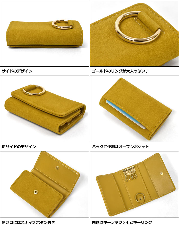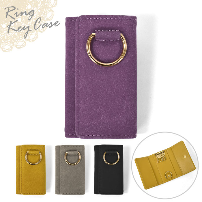 スウェード調 フェイクレザー リング キーケース /レディース 4連 スマートキー キーリング レザー 合成皮革 合皮 可愛い かわいい おしゃれ オシャレ 大人 大人っぽい カード カードケース カード収納 シンプル 無地 合成皮革 合皮 革 レザー/ p
