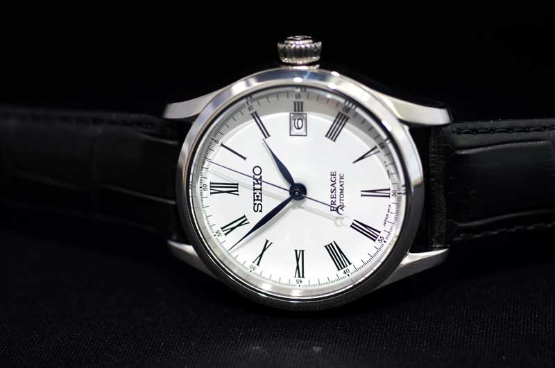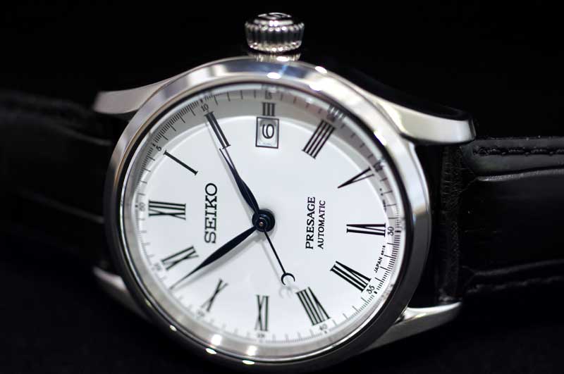 商品名 セイコー プレザージュ SEIKO PRESAGE 自動巻き メカニカル 腕時計 メンズ 琺瑯ダイヤル ほうろう SARX049 商品番号 SARX049 ブランド セイコー プレザージュ SEIKO PRESAGE ムーブメント メカニカル 自動巻き(手巻きつき) キャリバー:6R15 駆動期間:最大巻上時約50時間持続 精度:日差+25秒〜−15秒 シースルーバック スクリューバック ほうろうダイヤル 石数 23石 秒針停止機能 耐磁:あり 重さ:88g 日常生活用強化防水(10気圧) カレンダー(日付)機能つき 風防素材 デュアルカーブサファイアガラス ケース素材 ステンレススチール 裏ぶた:ステンレスとサファイアガラス ケースサイズ 47.8×40.5mm ケース厚 12.4mm バンド素材 クロコダイルレザー バンド留金タイプ ワンプッシュ三つ折れ方式 バンド幅 20mm 文字盤カラー ホワイト(ほうろうダイヤル) 保証期間 メーカー1年間保証 付属 取扱説明書 / 保証書 / 専用BOX その他のサービス ラッピング無料 店長の コメント 琺瑯ダイヤルとは鉄製素材のダイヤルに不純物の極めて少ない粘土・純水・ガラス等を原料とするうわぐすりを塗布し、高温で焼成した、美しい乳白色のダイヤルです。