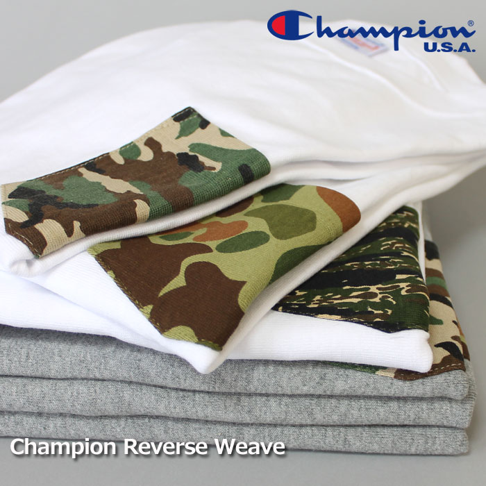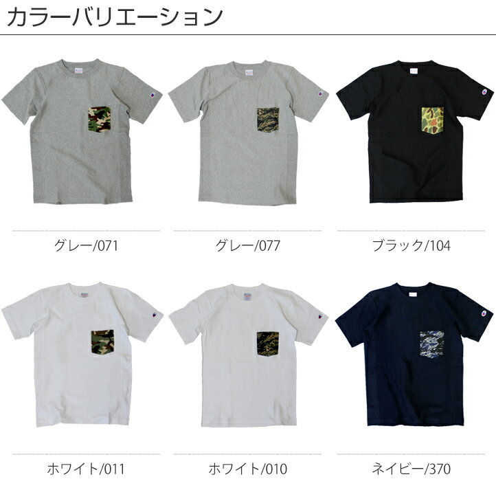 【1着購入の場合、ネコポス発送】【定番!】チャンピオン Champion リバースウィーブTシャツ 迷彩柄 ポケット付きTシャツ 厚手生地Tシャツ ポケT(C3-B369)ホワイト│グレー│ブラック│ネイビー