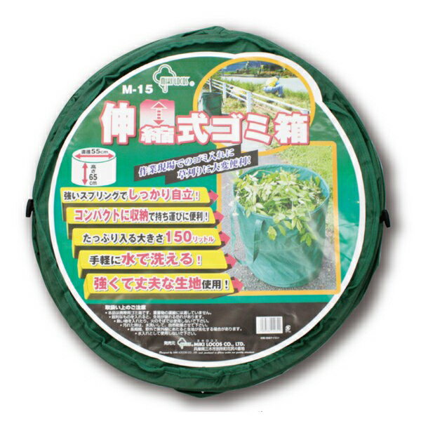 ミキロコス 伸縮式ゴミ箱 M-15 【特長】 水洗いOK!(※水入れとしては使用できません)150Lのたっぷり容量。