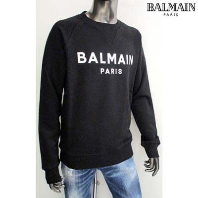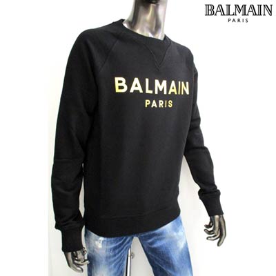 バルマン BALMAIN メンズ トップス スウェット トレーナー ロゴ 2color 前Vガゼット・ゴールド/シルバーBALMAINロゴプリント付きスウェット 黒 UH13279 I375 EAD/EAC (R70400) GB02 2020年秋冬新作【送料無料】 【smtb-TK】