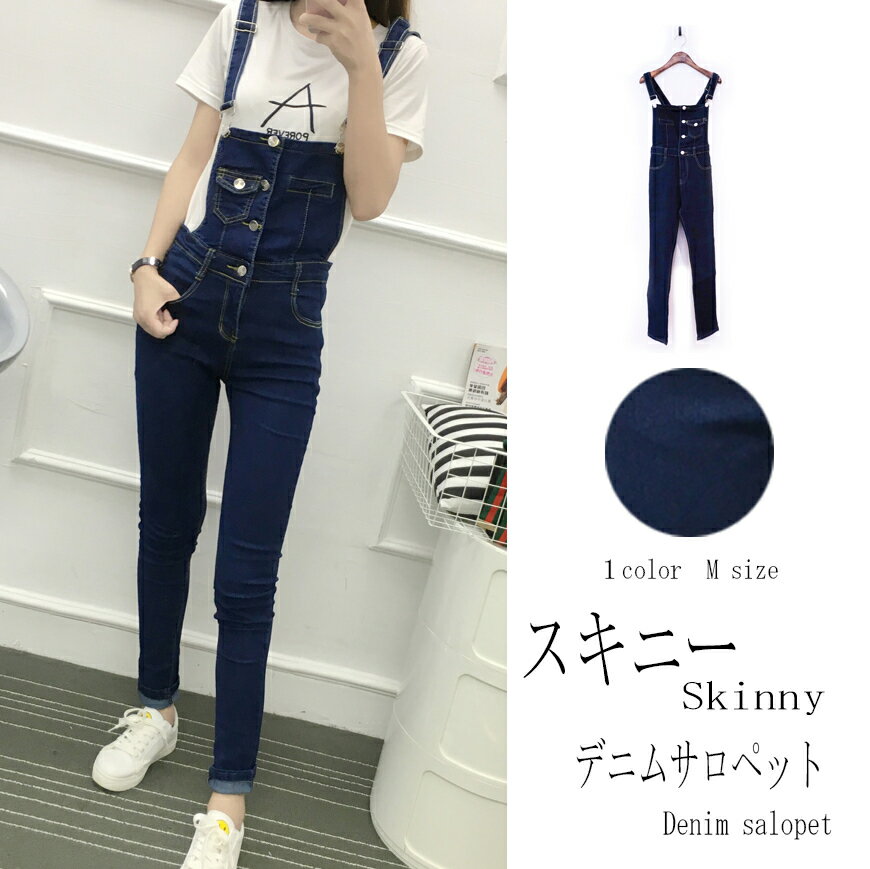 デニム デニムサロペット レディース オールインワン スキニー ストレッチ レディス サロペット オーバーオール デニム ジーンズ スキニーパンツ インディゴブルー 青 かわいい 脚長 美脚 カジュアル M L 大きいサイズ